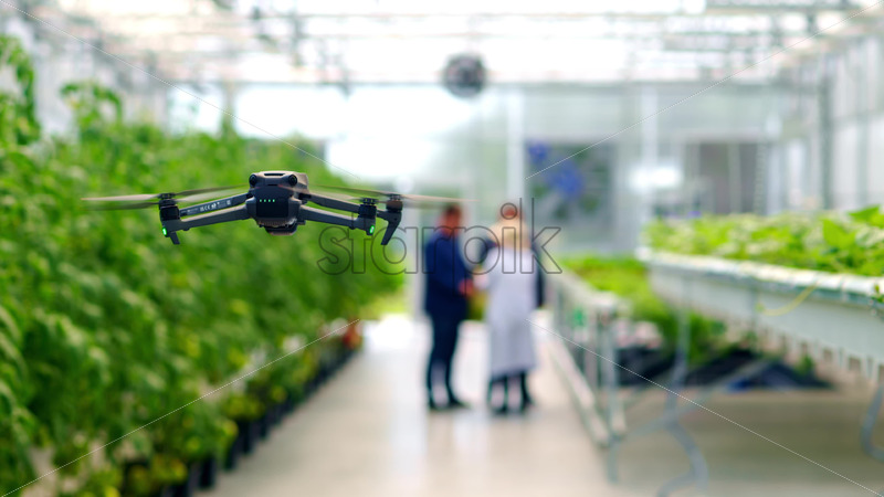 VIDEO Drone filming through a greenhouse while people are working Royalty Free Stock Video Footage