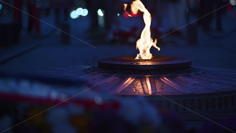 VIDEO Eternal flame burning on the Tomb of the Unknown Soldier in the evening, Paris, France Royalty Free Stock Video Footage