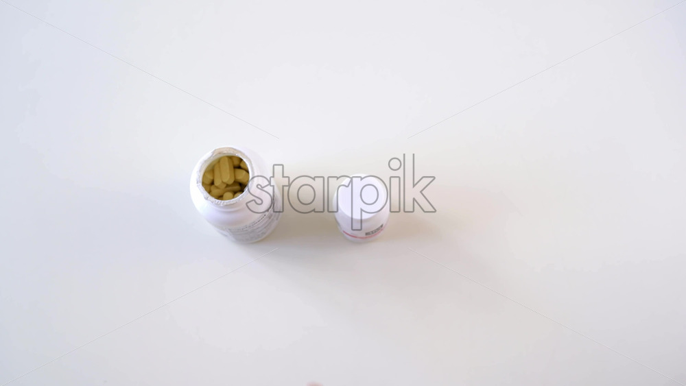 Female hand taking vitamins from two bottles and then closing it. Healthy lifestyle idea. Quarantine Royalty Free Stock Video Footage