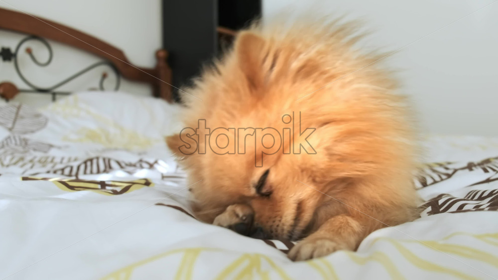 Frolicking pomeranian with yellow fur on a bed Royalty Free Stock Video Footage Royalty Free Stock Video Footage