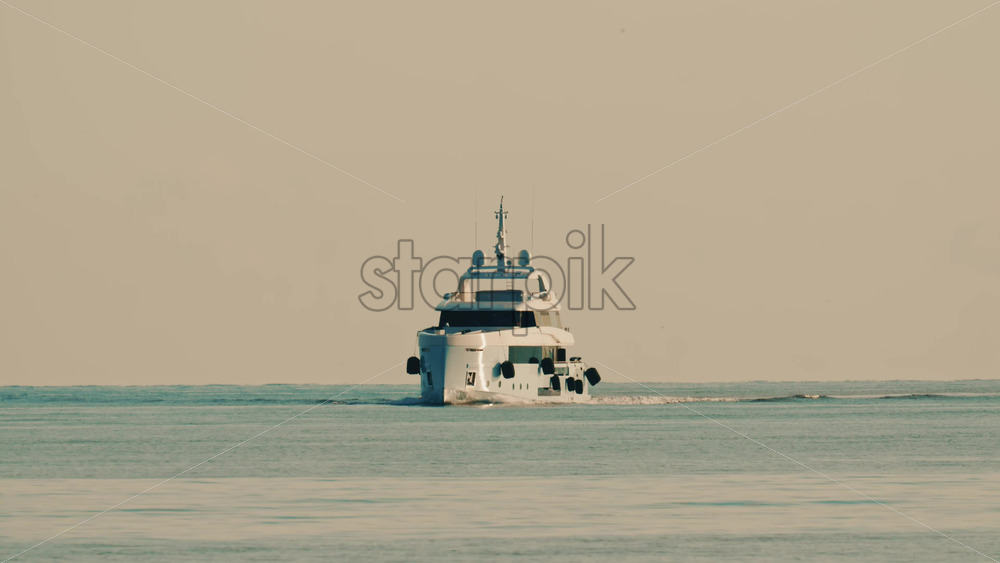 Modern motor yacht moving on calm blue water of the Mediterranean sea Royalty Free Stock Video Footage