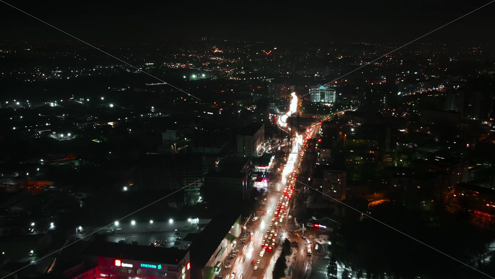 Hyperlapse of Chisinau at night, drone view. Multiple buildings, roads with moving cars, night city illumination. Moldova Royalty Free Stock Video Footage