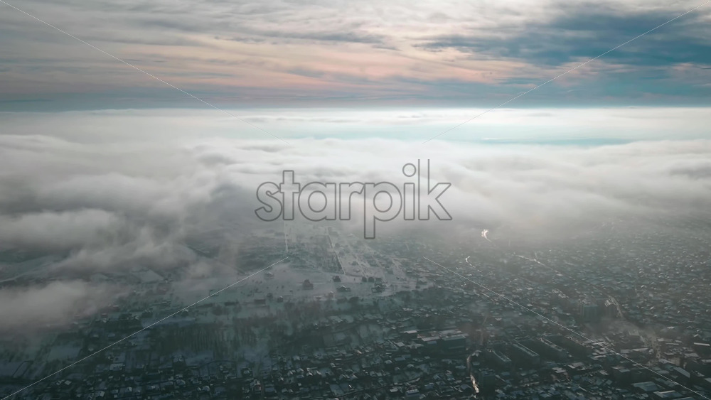 Hyperlapse of Chisinau from drone above the fast moving clouds with buildings visible through, Moldova Royalty Free Stock Video Footage