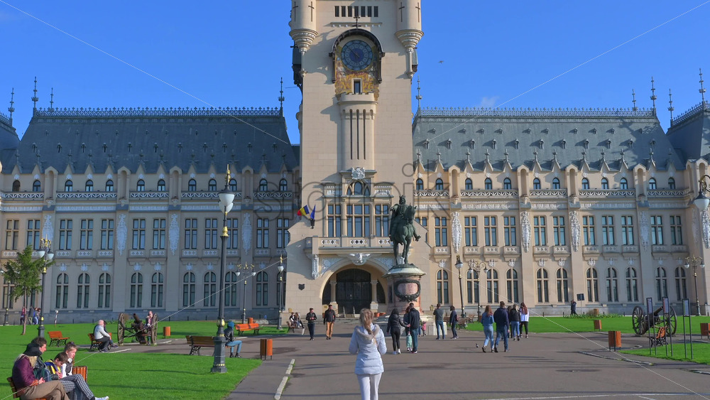 VIDEO Backside view of the Palace of Culture on a sunny day, Iasi, Romania Royalty Free Stock Video Footage