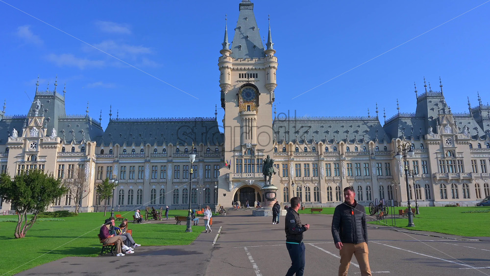 Iasi, Romania – April 25, 2021: Front view of the Palace of Culture on a sunny day Royalty Free Stock Video Footage