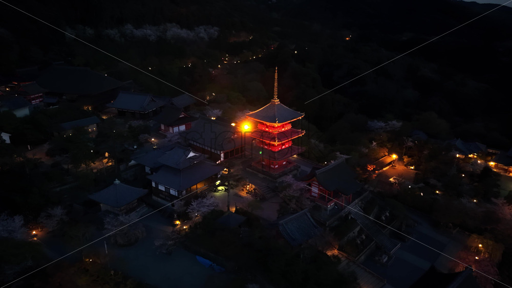 video Kyoto, Japan – April 24, 2025: Aerial drone view of the illuminated Kiyomizu-dera temple in the evening Royalty Free Stock Video Footage