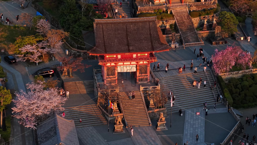 video Kyoto, Japan – April 24, 2025: Aerial drone view of the Kiyomizu-dera temple at sunset Royalty Free Stock Video Footage