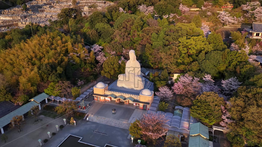 video Kyoto, Japan – April 24, 2025: Aerial drone view of the Ryozen Kannon Temple in daylight Royalty Free Stock Video Footage