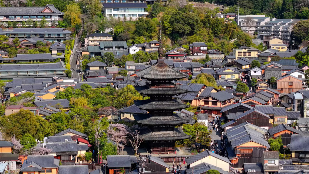 video Kyoto, Japan – April 24, 2025: Aerial drone view of the Yasaka Pagoda temple in daylight Royalty Free Stock Video Footage