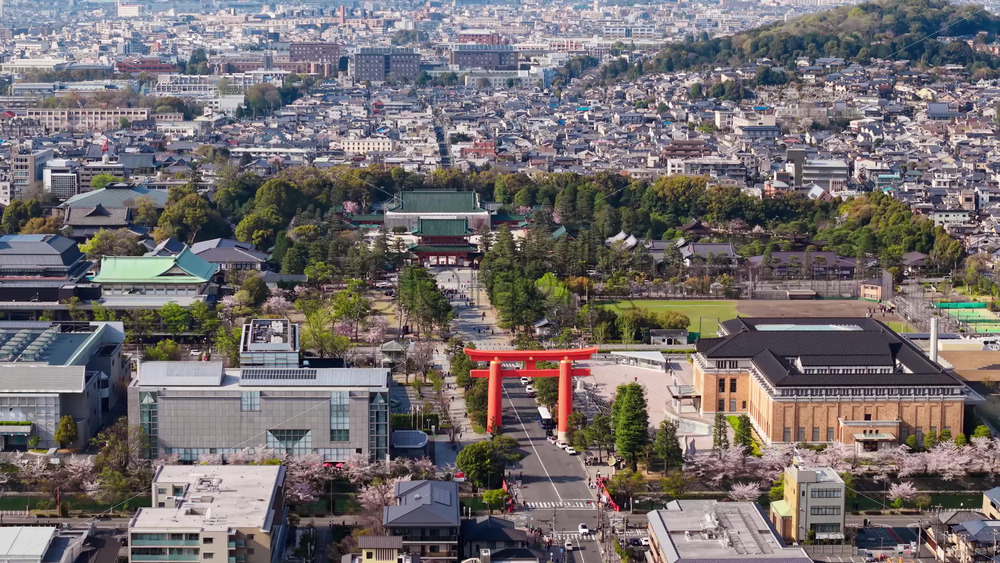 video Kyoto, Japan – April 25, 2025: Aerial drone view of the Heian Jingu Shrine in daylight Royalty Free Stock Video Footage