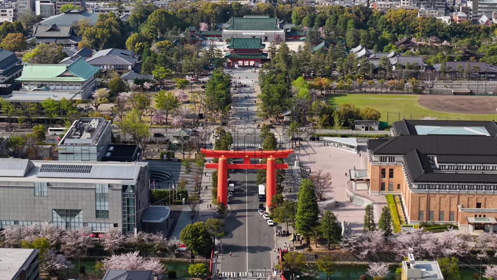 video Kyoto, Japan – April 25, 2025: Aerial drone view of the Heian Jingu Shrine in daylight Royalty Free Stock Video Footage