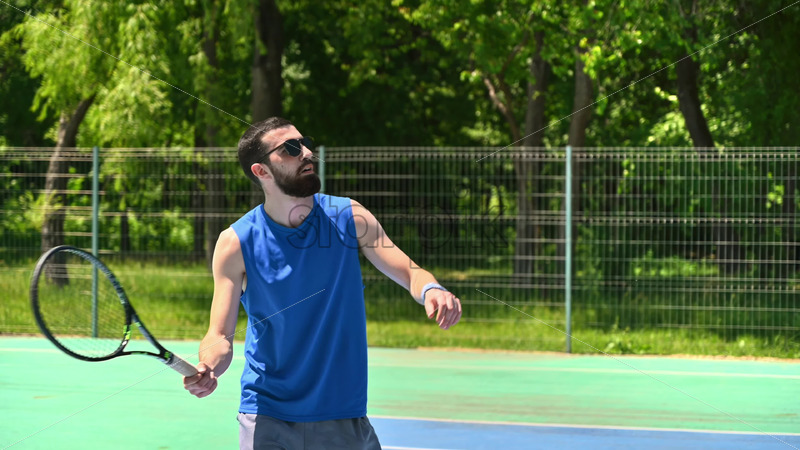 VIDEO Man playing tennis at sunrise, after rain Royalty Free Stock Video Footage