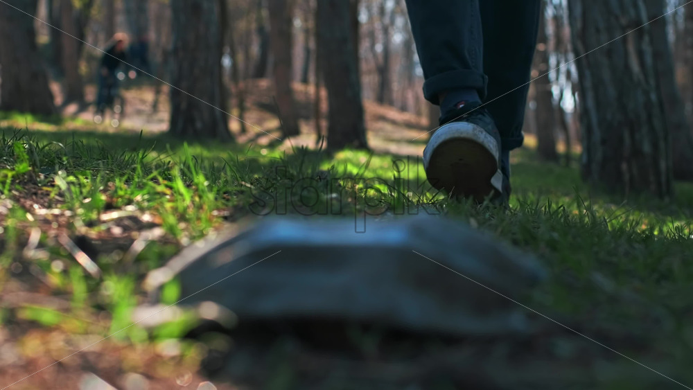 Man in medical gloves picking up dirty medical masks from the ground in a park. Pollution idea Royalty Free Stock Video Footage
