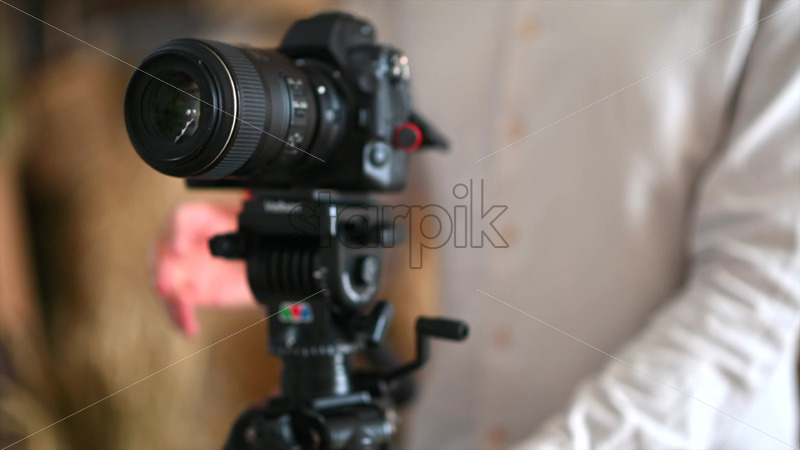VIDEO Man setting up profesional camera for a photoshoot Royalty Free Stock Video Footage