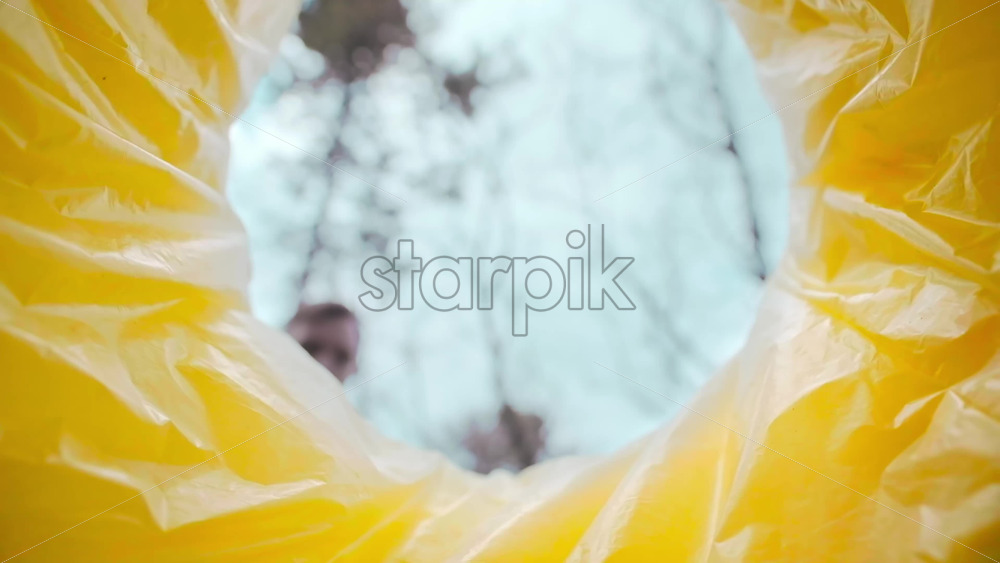 Man throwing a medical mask into a trash can. View from inside the can. Slow motion Royalty Free Stock Video Footage