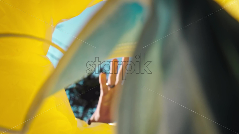 Man throwing a medical mask into a trash can. View from inside the can. Slow motion Royalty Free Stock Video Footage