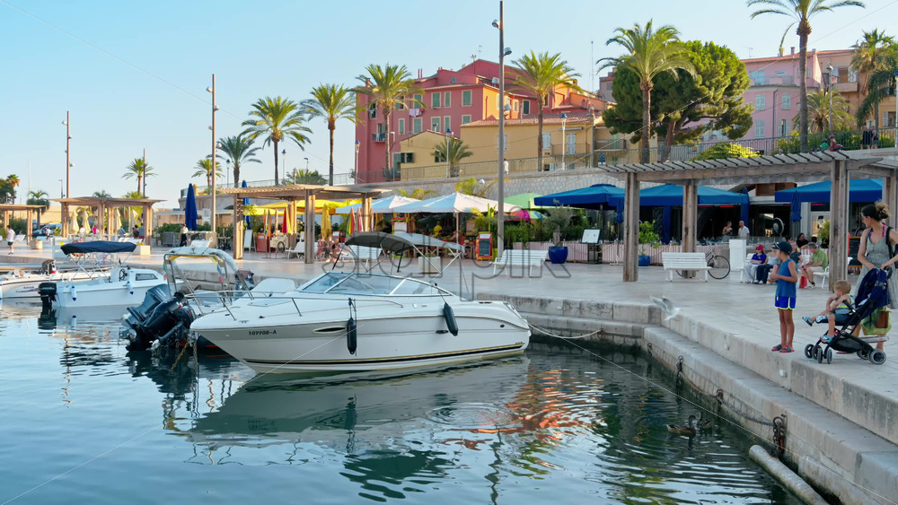 View of the Port de Menton in the French Riviera with people walking near it Royalty Free Stock Video Footage