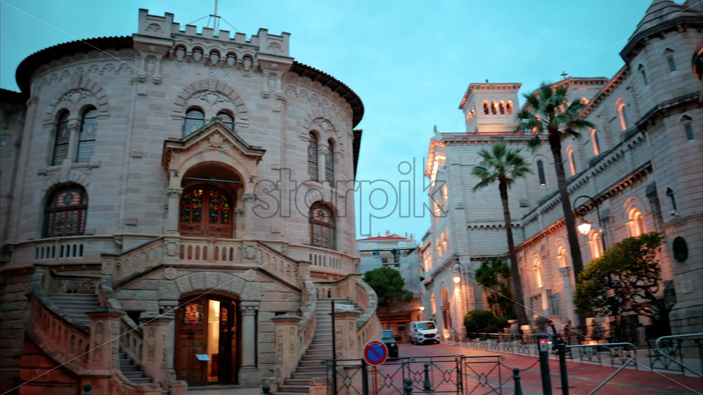 video Monaco City, Monaco – September 4, 2024: The facade of the Palace of Justice in the Old Town in the evening Royalty Free Stock Video Footage