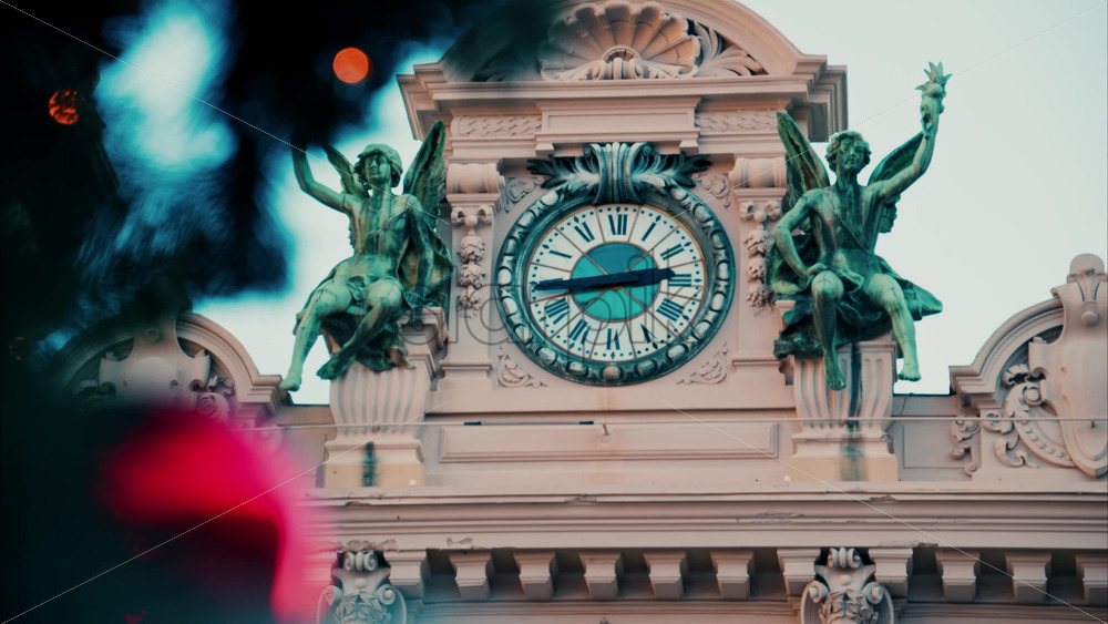 video Close up of decorations on a Christmas tree in front of the Monte Carlo Casino in Monaco in the evening Royalty Free Stock Video Footage