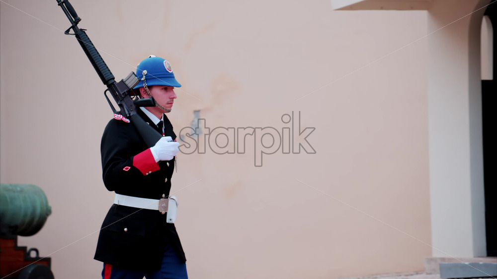 Home » Shop » 1 Video » Video Monte Carlo, Monaco – October 4, 2024: Guard marching at the Palace of Monaco in daylight