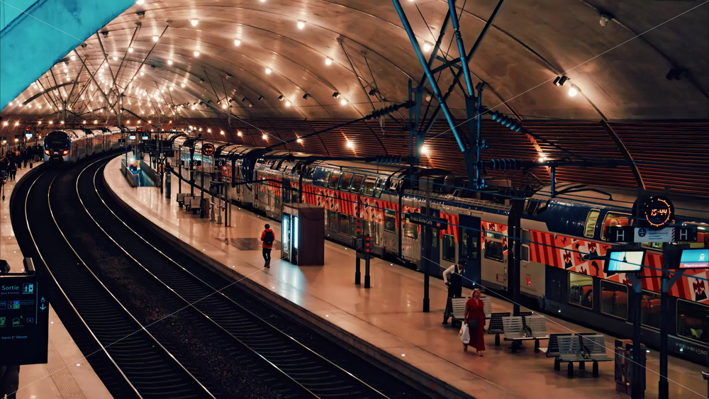 video Monte Carlo, Monaco – October 4, 2024: People and trains moving through the Monaco train station with bright lights