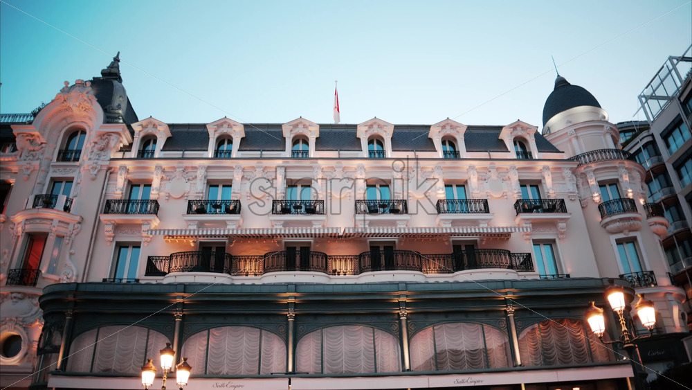 Video Monte Carlo, Monaco – October 4, 2024: The facade of the Monte-Carlo Casino in the evening Royalty Free Stock Video Footage