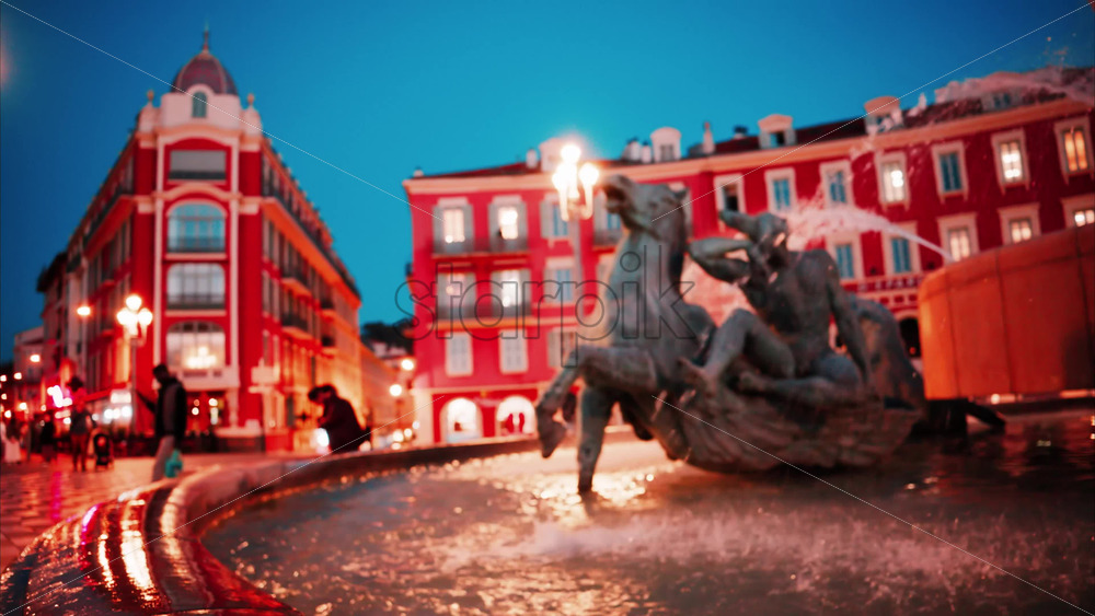 Video Nice, France – October 8, 2024: Close up of the Fontaine du Soleil at Place Massena in the evening Royalty Free Stock Video Footage