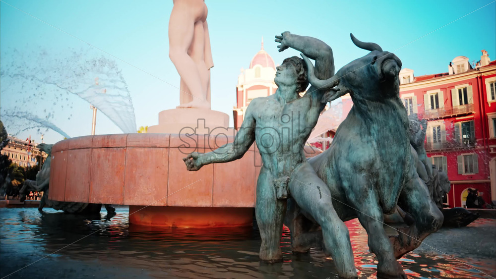 video Nice, France – October 8, 2024: View of the Fontaine du Soleil at Place Massena in daylight Royalty Free Stock Video Footage