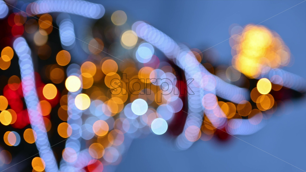 Out of focus Christmas light decorations on a Christmas tree outside. Vertical Royalty Free Stock Video Footage