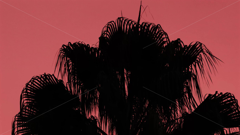 Palm leaves form a dark silhouette against a pastel pink sunset sky Royalty Free Stock Video Footage