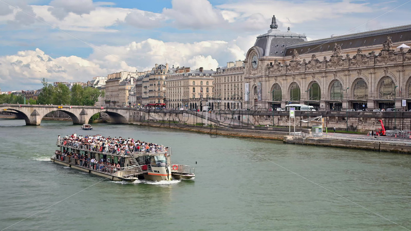 VIDEO Paris, France – June 18, 2024: A boat full of people moving on the Seine Royalty Free Stock Video Footage