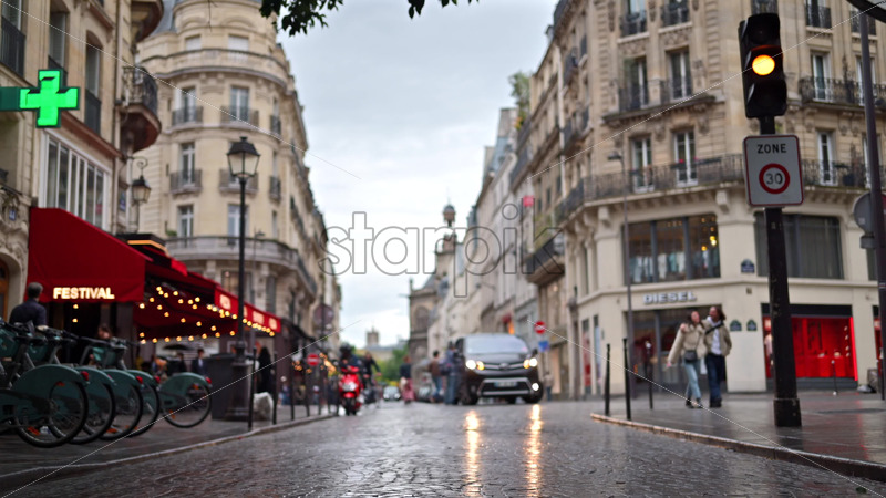 VIDEO Paris, France – June 18, 2024: Parisian Avenue Street View on a rainy day Royalty Free Stock Video Footage