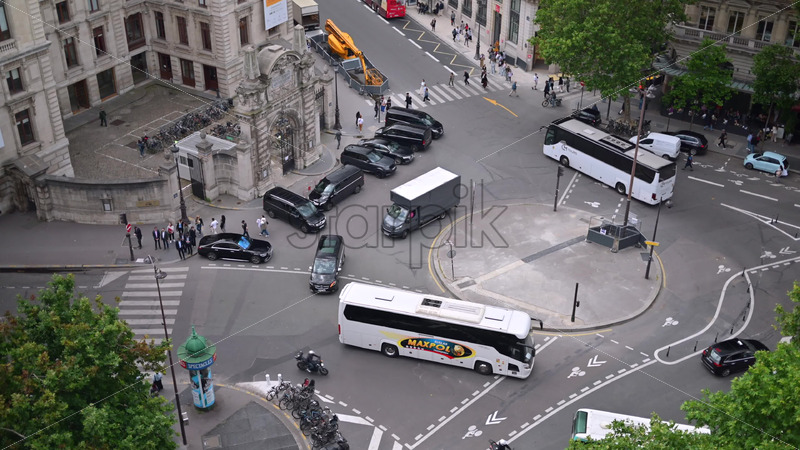 VIDEO Paris, France – June 18, 2024: People and cars seen from above moving in traffic Royalty Free Stock Video Footage