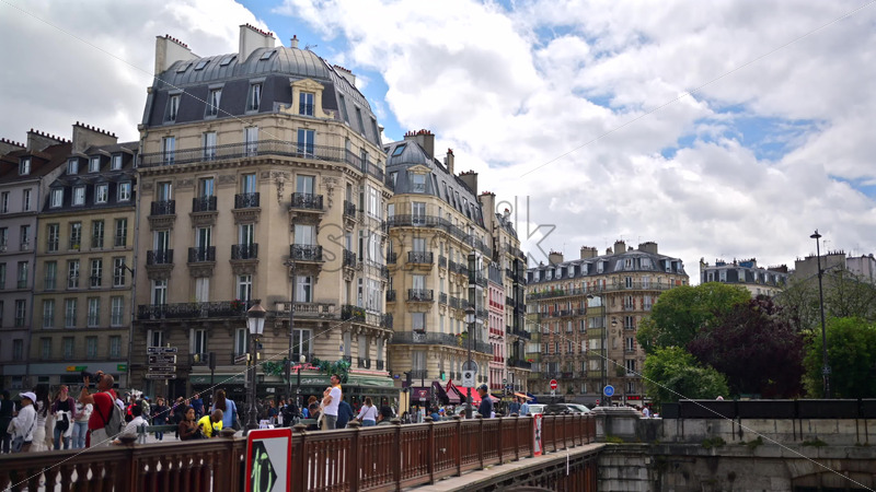 VIDEO Paris, France – June 18, 2024: People crossing the Pont au Double bridge over the Seine Royalty Free Stock Video Footage