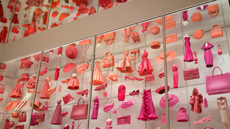 VIDEO Paris, France – June 18, 2024: Pink decorations on the inside walls of the La Galerie Dior Royalty Free Stock Video Footage