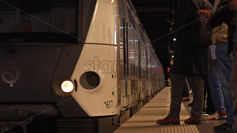 Home » Shop » 1 Video » Video Paris, France – June 18, 2024: White train arriving at the underground station Auber