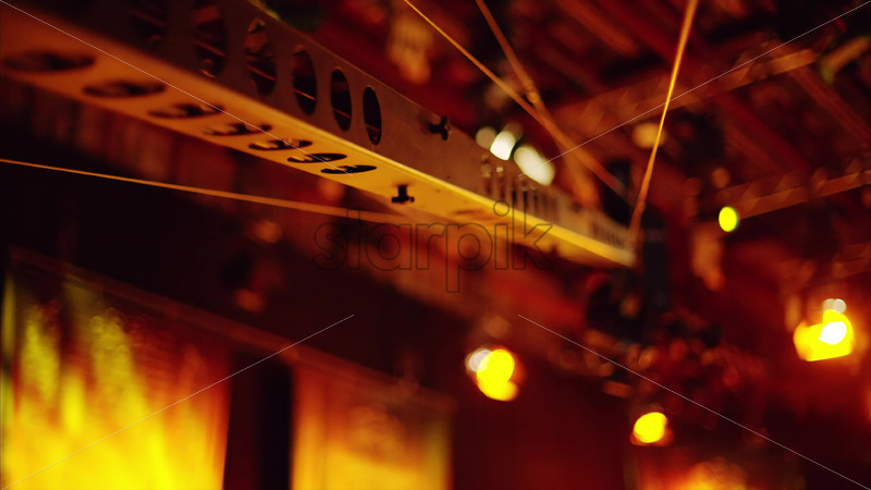 Chisinau, Moldova – March 29, 2024: Professional long camera filming and flashing studio lights on the ceiling of a TV set Royalty Free Stock Video Footage Royalty Free Stock Video Footage