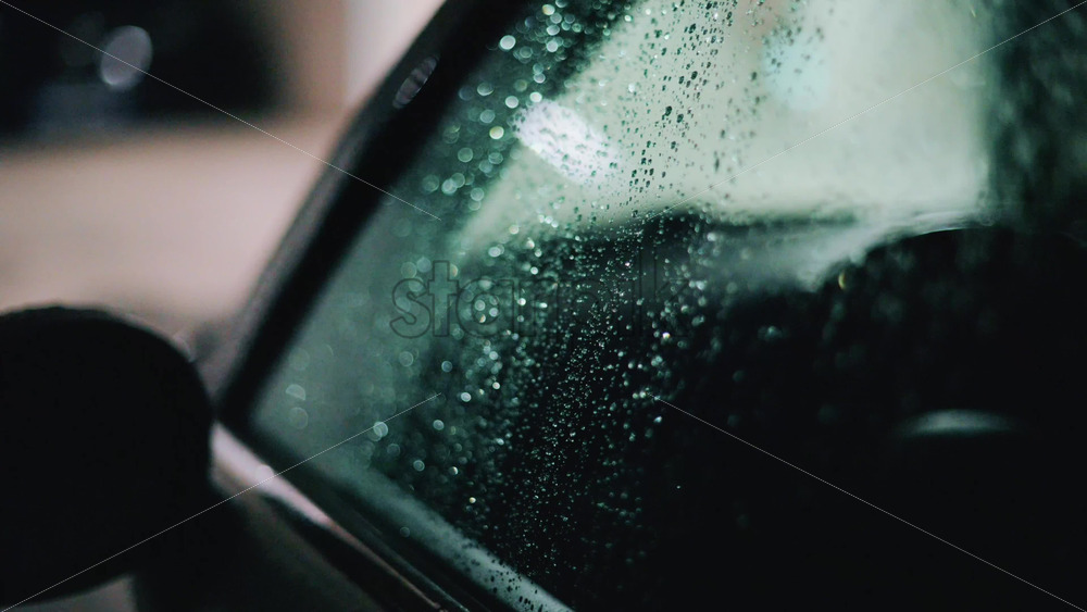 Raindrops on a car window illuminated by city lights Royalty Free Stock Video Footage