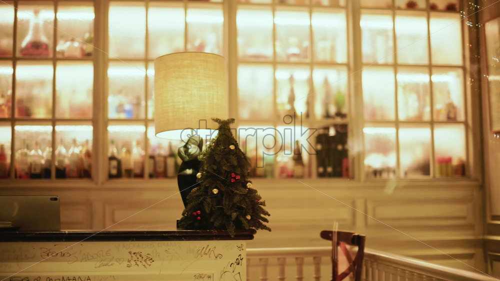 Room showing framed artwork on the wall, soft glowing particles or reflections, and warm ambient lighting Royalty Free Stock Video Footage