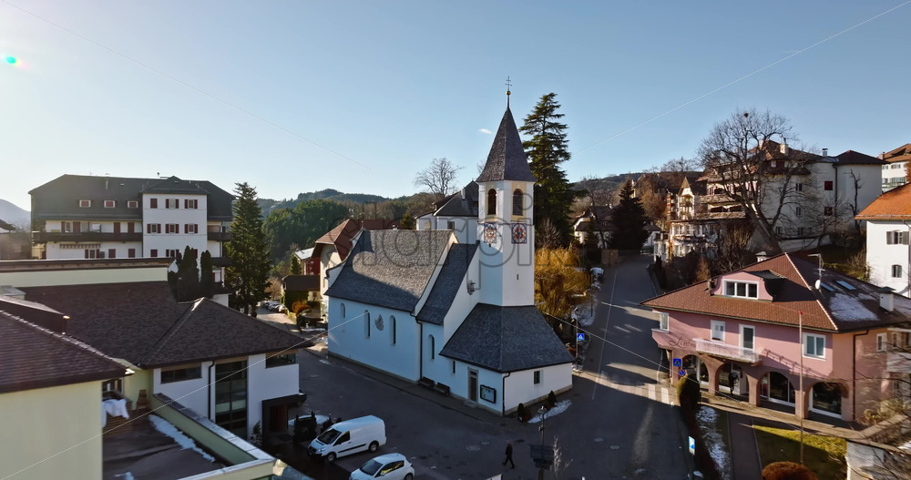 Home » Shop » 1 Video » Video Soprabolzano, Italy – January 11, 2025: Aerial drone view of the church in Soprabolzano village on the Renon plateau in the Dolomites, Italy
