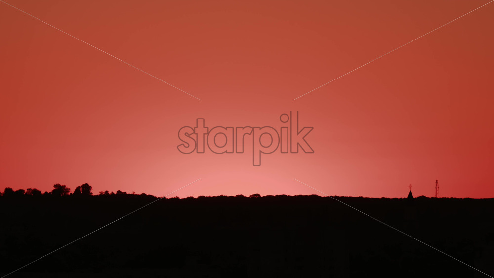 Stunning sunset with the sun descending behind the hills and a bird flying across the orange sky Royalty Free Stock Video Footage
