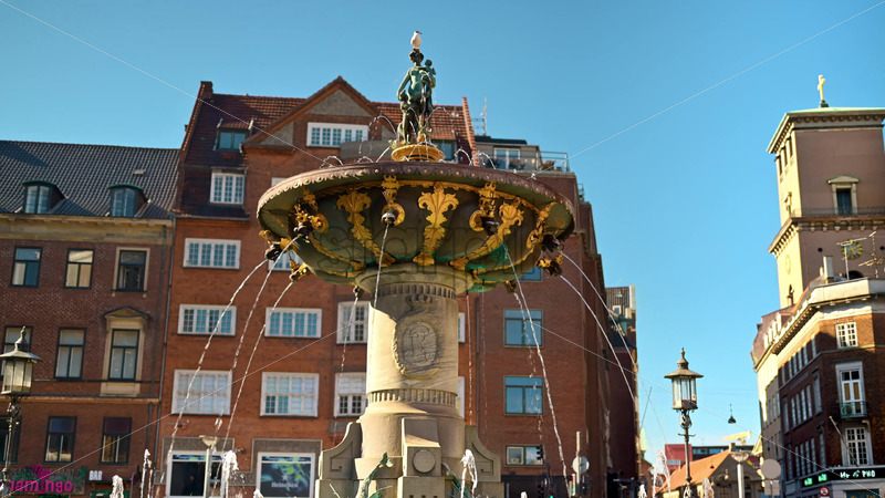 Video Aerial drone view of boats on the Nyhavn waterfront, canal and entertainment district in Copenhagen, Denmark in daylight Royalty Free Stock Video Footage