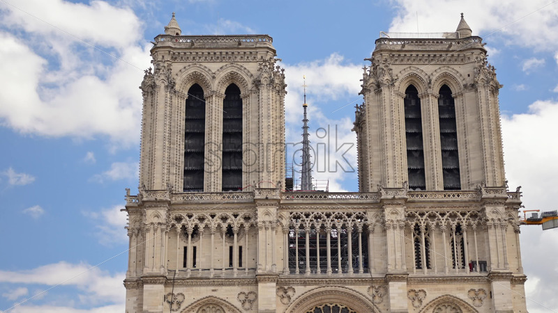 VIDEO The facade of the Cathedrale Notre-Dame de Paris in France with the blue sky on the background Royalty Free Stock Video Footage