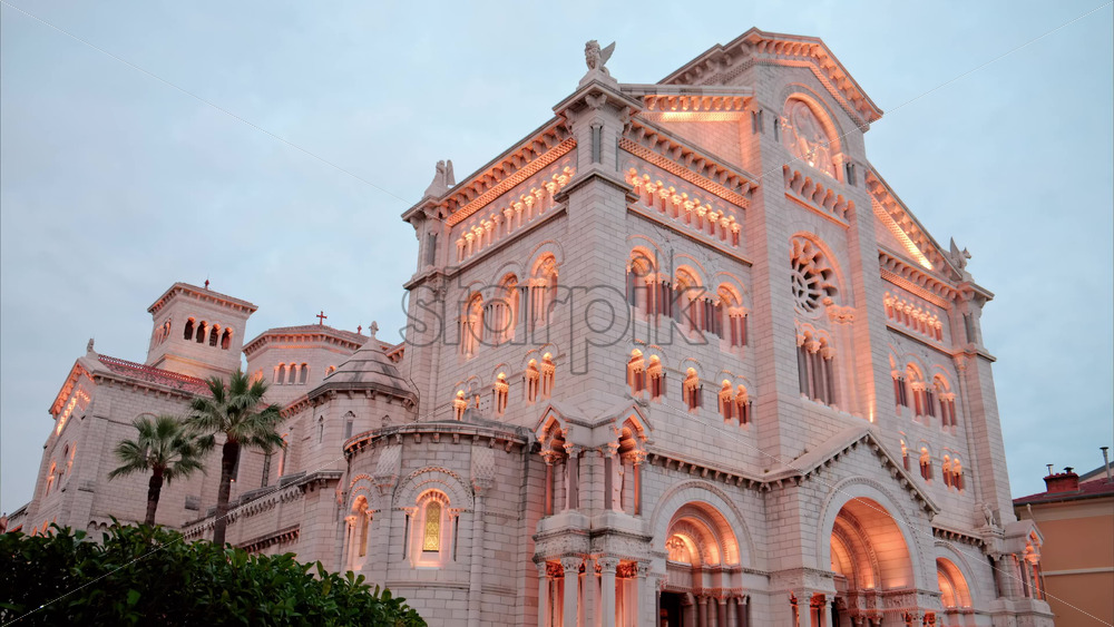 video The facade of the Monaco Cathedral in the Old Town in the evening Royalty Free Stock Video Footage