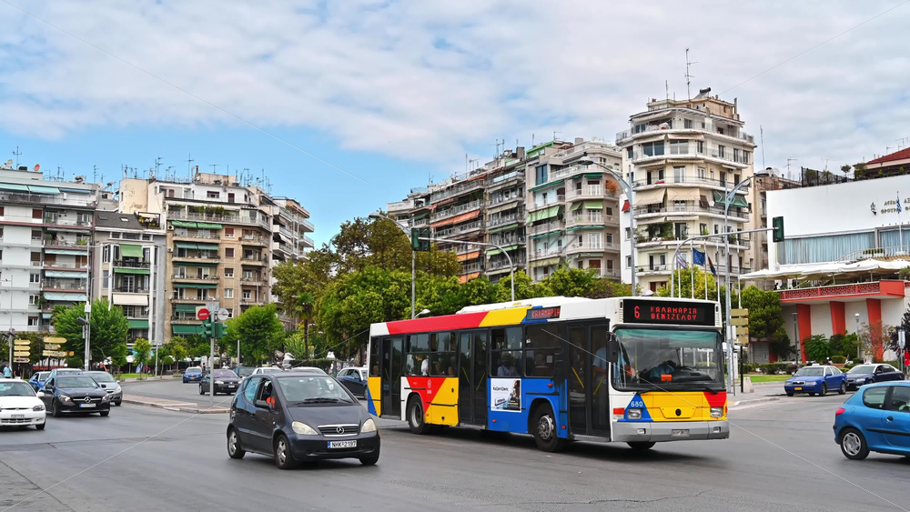 THESSALONIKI, GREECE – SEPTEMBER 21, 2020: Circulation in the city. Historic buildings on background Royalty Free Stock Video Footage