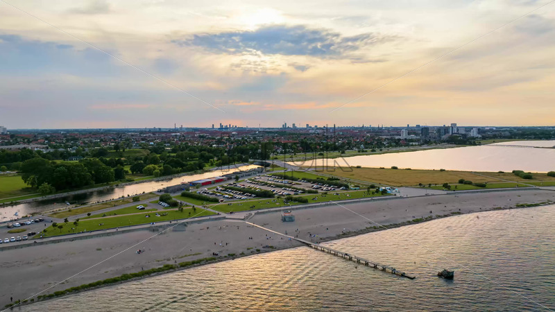 VIDEO – Aerial drone view of Amagerbro area in the northern part of the island Amager in Copenhagen, Denmark at sunset Royalty Free Stock Video Footage