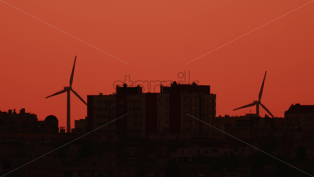 Aerial drone view of offshore wind turbines spinning in the sea at the Oresund Wind Farm in Copenhagen, Denmark. Vertical Royalty Free Stock Video Footage