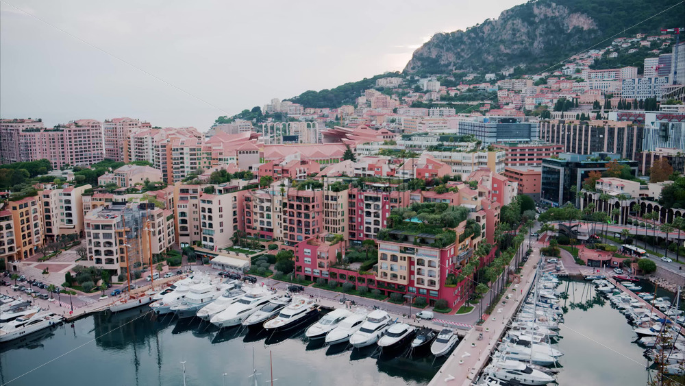 Home » Shop » 1 Video » Video View of boats docked in the Monaco Marina with the skyline of the city on the background