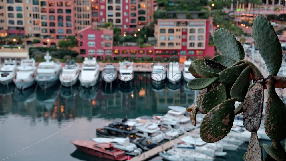 Home » Shop » 1 Video » Video View of boats docked in the Port de Fontvieille with the skyline of Monaco on the background in the evening