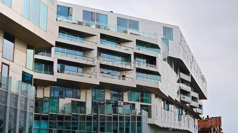 VIDEO View of the 8 House housing complex in Orestad, Copenhagen, Denmark Royalty Free Stock Video Footage